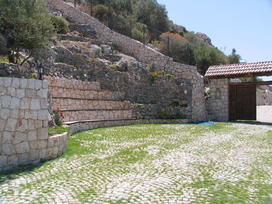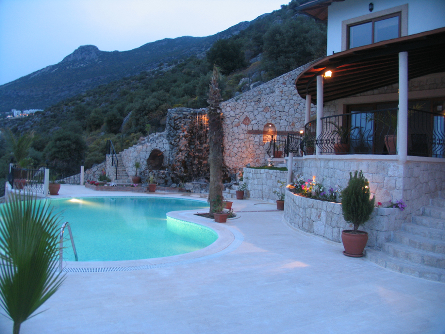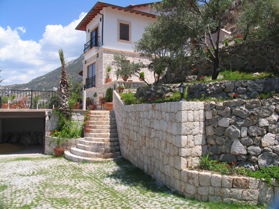 villas on the hillside just above the road at the entrance of Kalkan. Once